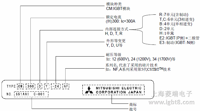 三菱電機IGBT模塊的命名方法: