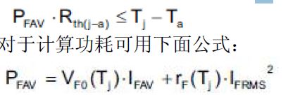 在連續(xù)運行時,對正向導通電流負載的解釋參數是平均功耗PFAV 乘以總熱阻Rth(j-a)。這個乘積不允許大于環(huán)境溫度Ta 和最大允許結層溫度Tj 之間的差:
