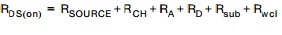 DMOS溝槽MOSFET的導通電阻是活動載流子必須流經(jīng)的各 個區(qū)域的電阻之和 (如圖 2 所示)。